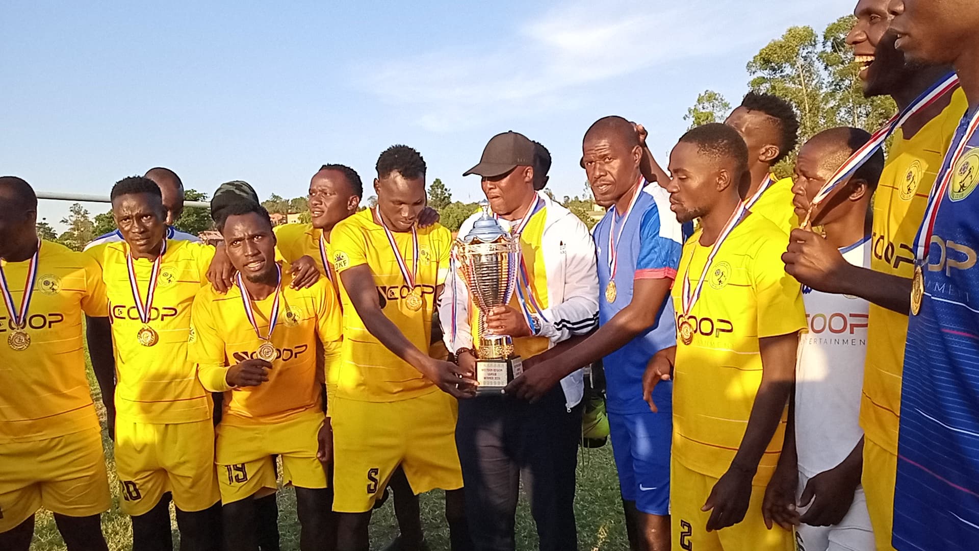 Bunyaruguru United FC celebrating their trophy recently