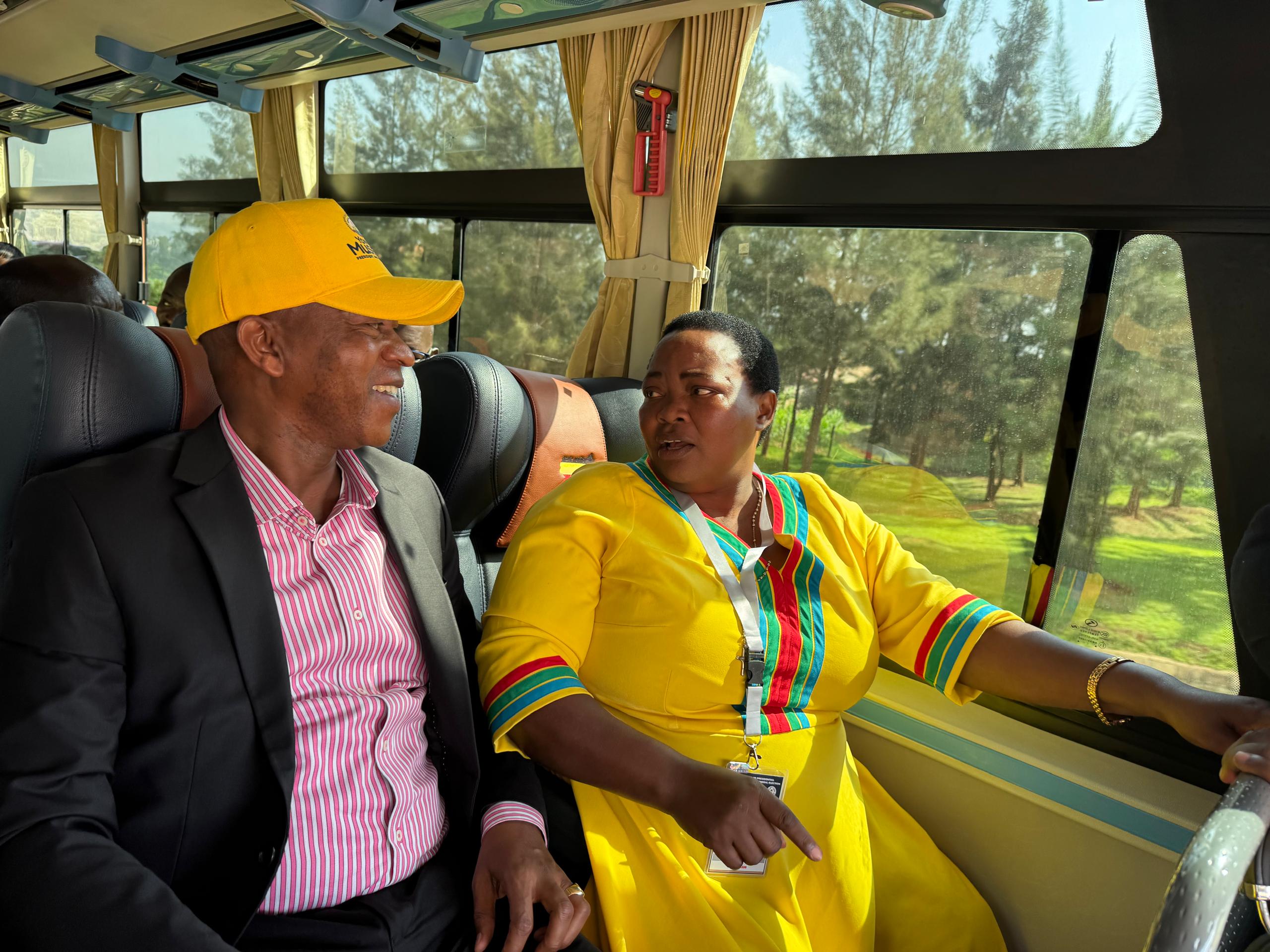 Gashumba and Prime Minister Nabbanja in a bus going to Lweeza