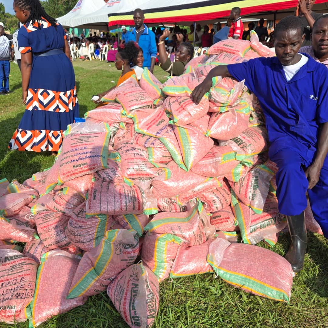 But Hon. Nyakato didn’t stop at food and entertainment. In a bold move to promote food security and women’s economic empowerment, she distributed hundreds of packets of vegetable seedlings, including onions, cabbage, green pepper, eggplant, and sukuma wiki. Over 1,000 residents benefitted from this initiative, and maize seeds were also given out to support smallholder farmers—mostly women—who form the backbone of Hoima’s agricultural economy.